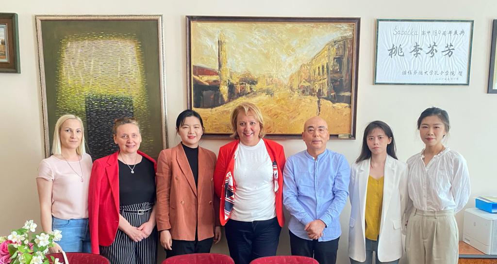 當地時間5月19日,沙巴茨高中(Sabacka Grammar School)校長瑪麗安娜·伊薩柯維奇(Mariana Isakovi?)熱情接待了孔院一行,表示學生們都迫不及待想要在具有濃郁中國文化氛圍的孔子課堂新教室學習漢語、體驗中國文化。雙方就秋季學期招生規模、班級設置及線下教學安排等事宜展開討論。