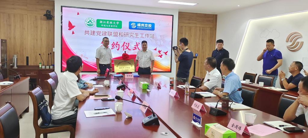近日,我校環資學院赴嵊州市參加“浙江農林大學環境與資源學院與嵊州市交通投資發展集團有限公司”校企合作推進會暨共建黨建聯盟和研究生工作站簽約會。