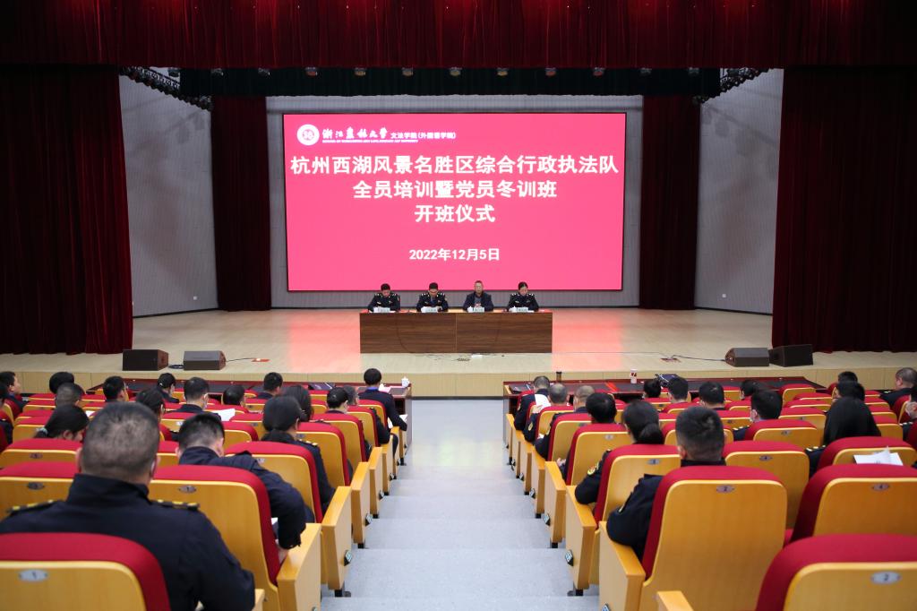 12月5日,西湖風(fēng)景名勝區(qū)綜合行政執(zhí)法隊(duì)全員輪訓(xùn)暨黨員冬訓(xùn)在文法學(xué)院開班。來自西湖風(fēng)景名勝區(qū)綜合行政執(zhí)法隊(duì)的執(zhí)法干部70余人參加培訓(xùn)。