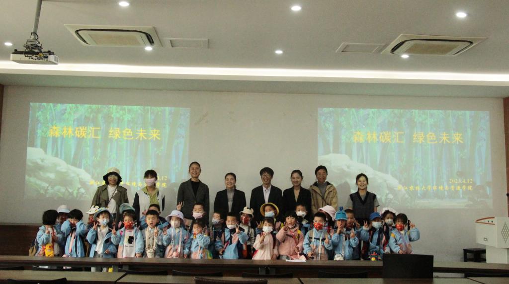 4月12日,環(huán)資院、碳中和學(xué)院為錦北街道中心幼兒園吳越人家園區(qū)小朋友開(kāi)展了一場(chǎng)主題為“森林碳匯,綠色未來(lái)”的碳匯科普教育活動(dòng)。活動(dòng)邀請(qǐng)了學(xué)院森林碳匯團(tuán)隊(duì)的周宇峰教授、梅婷婷博士等專(zhuān)家,為小朋友們展示了《我是吸碳王》動(dòng)畫(huà)片,并贈(zèng)送了周?chē)?guó)模教授簽名的《我是吸碳王》繪本。
