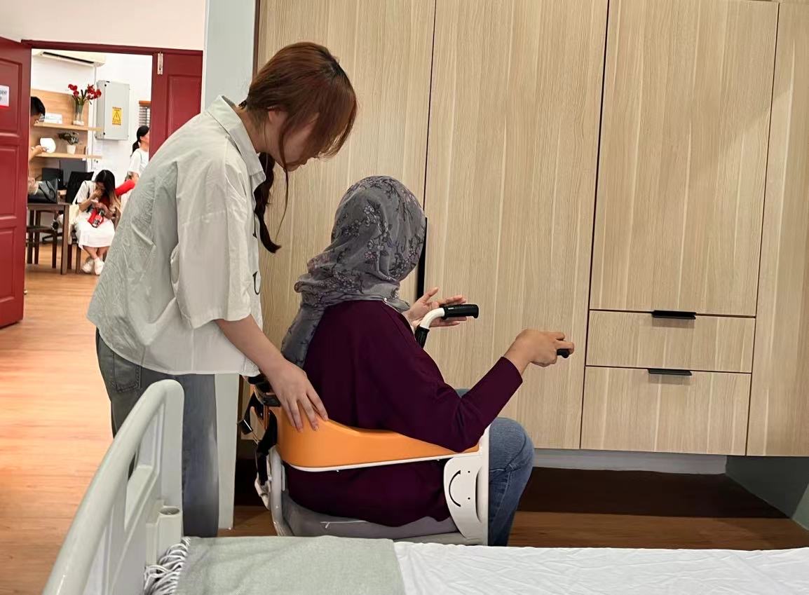 活動期間,志愿者們跟隨專業(yè)人員共同參觀博特拉大學養(yǎng)老院,了解了針對不同程度的殘疾狀況提供的房間和設備。每位志愿者認真學習、熟悉幫助殘疾人康復的各種設備,為當?shù)貧埣踩耸空{(diào)試康復設備,推扶輪椅,并與他們友好地交流日常生活,向他們介紹雷鋒精神。志愿者們用無私的奉獻和真誠的關懷,為此次幫扶活動增添了一份溫暖和人情味。