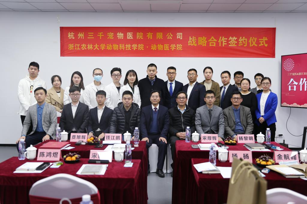 近日,動科動醫學院與杭州三千寵物醫院有限公司在三千寵醫余杭旗艦店簽署捐贈和戰略合作協議。三千寵醫向動科動醫學院捐贈二十五萬元設立“三千夢想獎學金”,捐贈四萬美元設立“三千DVM獎學金”,支持動科動醫學院辦學。三千寵醫董事長錢江鵬,校黨委委員、動科動醫學院院長宋厚輝,校友辦主任、校教育基金會秘書長楊黎明出席活動。